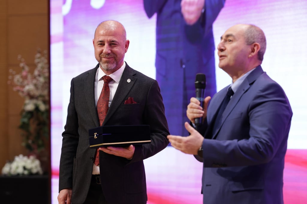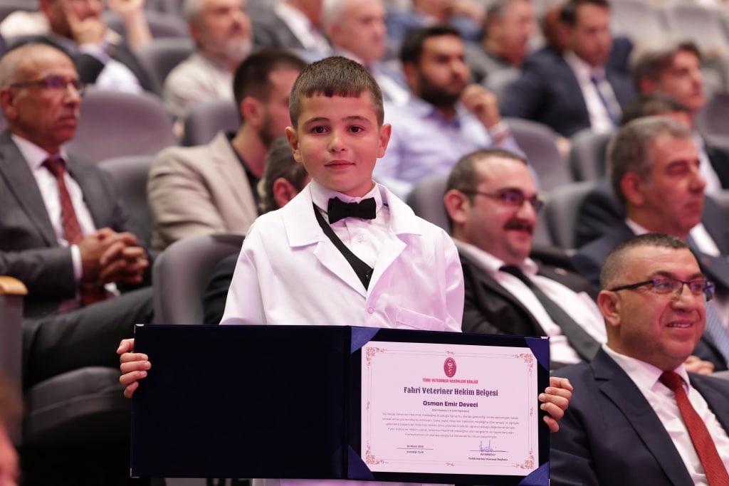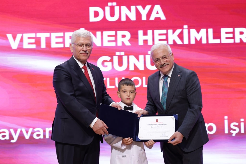 Ankara'da düzenlenen Dünya Hekimler Günü programında, okulumuz öğrencisi Osman Emir Deveci'ye "Fahri Veteriner Hekim " unvanı verilirken, Valimiz Sn. Mehmet Ali Kumbuzoğlu'na ''Onur Plaketi'' takdim edildi. Dünya Veteriner Hekimler Günü vesilesiyle Veteriner Hekimler Birliği Merkez Konseyi tarafından organize edilen Dünya Veteriner Hekimler Günü kutlama programı, Tarım ve Orman Bakanı Sn. İbrahim Yumaklı, Aksaray Valisi Sn. Mehmet Ali Kumbuzoğlu, Türk Veteriner Hekimleri Birliği Merkez Konseyi Başkanı Sn. Ali Eroğlu ve çok sayıda veteriner hekimin katılımıyla Ankara'da gerçekleştirildi. Dünyanın en genç veteriner hekim unvanını alarak hekim önlüğü giyen öğrencimiz Osman Emir Deveci, bu anlamlı programa İlçe Milli Eğitim Müdürü Sn. İbrahim Kılıçer ile birlikte katıldı. Valimiz Sn. Mehmet Ali Kumbuzoğlu, 18 Aralık 2024 tarihinde Celil İlkokulunu ziyaret etmiş, Osman Emir Deveci isimli öğrencimizle sohbet ettiği esnada ne olmak istiyorsun sorusuna: ''Veteriner olmak istiyorum.'' yanıtını almıştı. Sn. Valimizle öğrencimiz arasında; veteriner hekimlik mesleğini sevdirecek keyifli sohbet görüntüleri sosyal medya hesaplarından paylaşılmıştı. Veteriner hekimliği adına sosyal medyada oluşturduğu toplumsal farkındalık için Valimiz Sn. Mehmet Ali Kumbuzoğlu'na ''Onur Plaketi'' takdim edilirken, öğrencimiz Osman Emir Deveci'ye ''Fahri Veteriner Hekim Belgesi'' takdim edildi. Öğrencimiz Osman Emir Deveci'nin veteriner hekimlik mesleği hayaline destek veren Sn. Bakanımıza, Sn. Valimize ve tüm yetkililere şükranlarımızı arz ediyoruz. Dünya Veteriner Hekimler Günü kutlu olsun