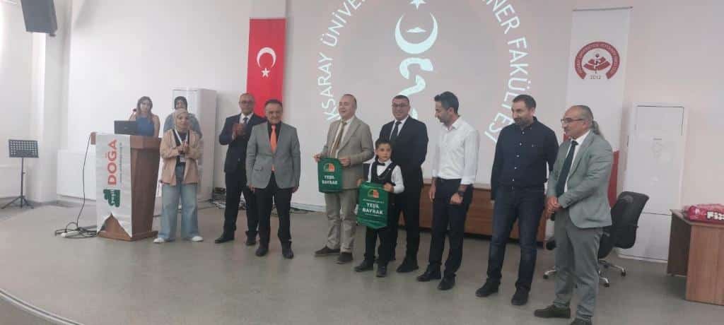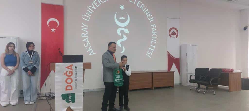 Öğrencimiz Osman Emir Deveci "Yeşil Bayrak" Ödülüne Layık Görüldü Okulumuz öğrencisi Osman Emir Deveci veterinerlik mesleği hayalini dile getirmesiyle büyük ilgi görmüş ve "Fahri Veteriner Hekim" unvanı almıştı. Yeşil Doğa Derneği tarafından Aksaray Üniversitesi Veteriner Fakültesinde organize edilen ödül töreninde öğrencimiz Osman Emir Deveci'ye "Yeşil Bayrak" ödülü verildi. Veteriner Fakültesi Konferans Salonunda düzenlenen ödül törenine, Veteriner Fakültesi Dekanı ve yardımcıları, Yeşil Doğa Derneği Başkanı Sn.Abdulkadir Ay, Eskil İlçe Milli Eğitim Müdürü Sn. İbrahim Kılıçer, fakülte akademisyenleri ve öğrenciler katıldı. Törende konuşma yapan Müdürümüz Sn. İbrahim Kılıçer; Sn. Valimizin Celil İlkokulu ziyaretiyle başlayıp Ankara'da düzenlenen törenle öğrencimiz Osman Emir Deveci'ye "Fahri Veteriner Hekim" unvanı verilme anına kadar devam eden süreci anlattı. Müdürümüz Sn. İbrahim Kılıçer bugün burada Yeşil Doğa Derneği'nin yaptığı jest ile öğrencimizin veterinerlik mesleğine olan yolculuğunda önemli bir adım daha atıldığını belirtirken, öğrencimizin hayaline katkı sunan herkese teşekkürlerini iletti.
